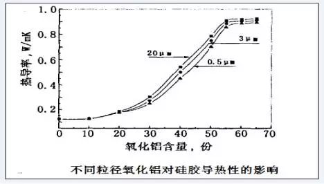不同粒徑的氧化鋁對(duì)硅膠的導(dǎo)熱率的影響如下: