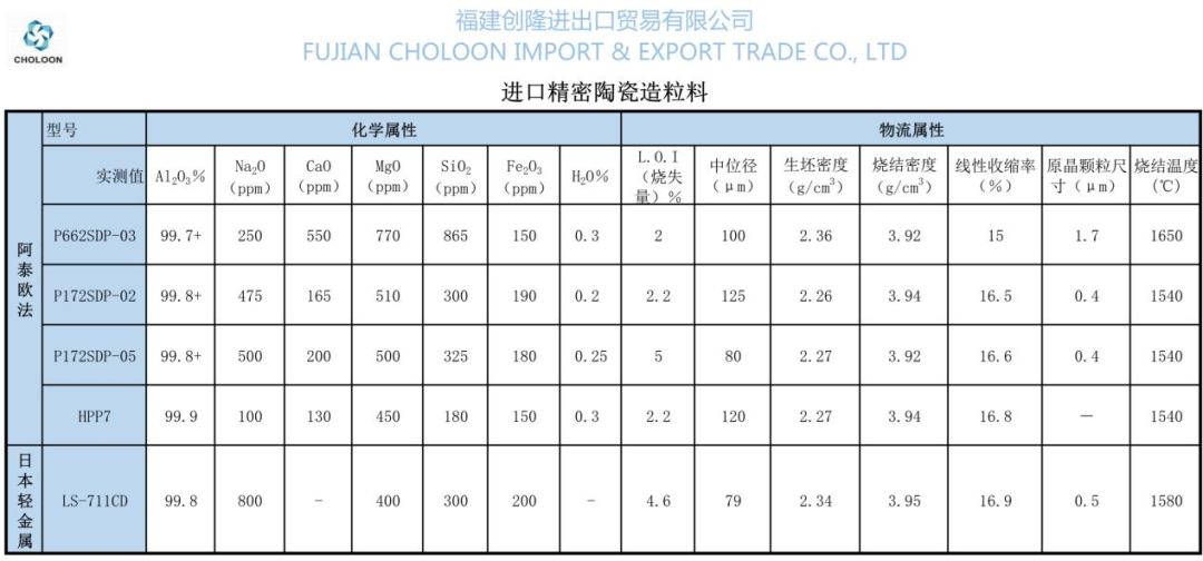 ▼適用于燒成高密度大型陶瓷件的高活性氧化鋁