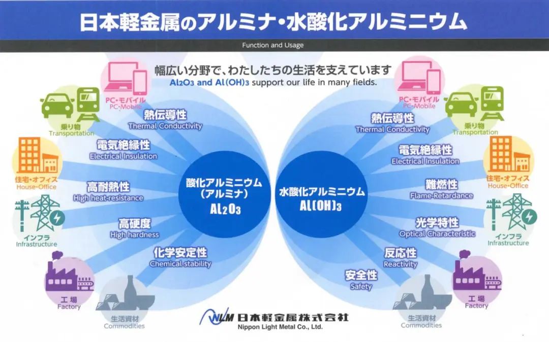日本輕金屬(Nippon Light Metal)化學(xué)品氧化鋁及氫氧化鋁,具有卓著的物理性能,優(yōu)異的化學(xué)性能,作為陶瓷耐火和磨料的原料,其產(chǎn)品典型特征種類清晰,應(yīng)用方向明確細(xì)分: