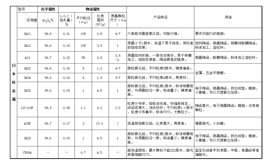▼適用于燒成高密度大型陶瓷件的高活性氧化鋁