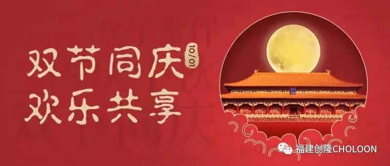 “雙節(jié)”將至,福建創(chuàng)隆公司向全體同仁及家屬,關注、關心和支持公司發(fā)展的各界朋友致以最誠摯節(jié)日祝福和衷心的感謝,提前祝您們節(jié)日快樂,闔家幸福!
