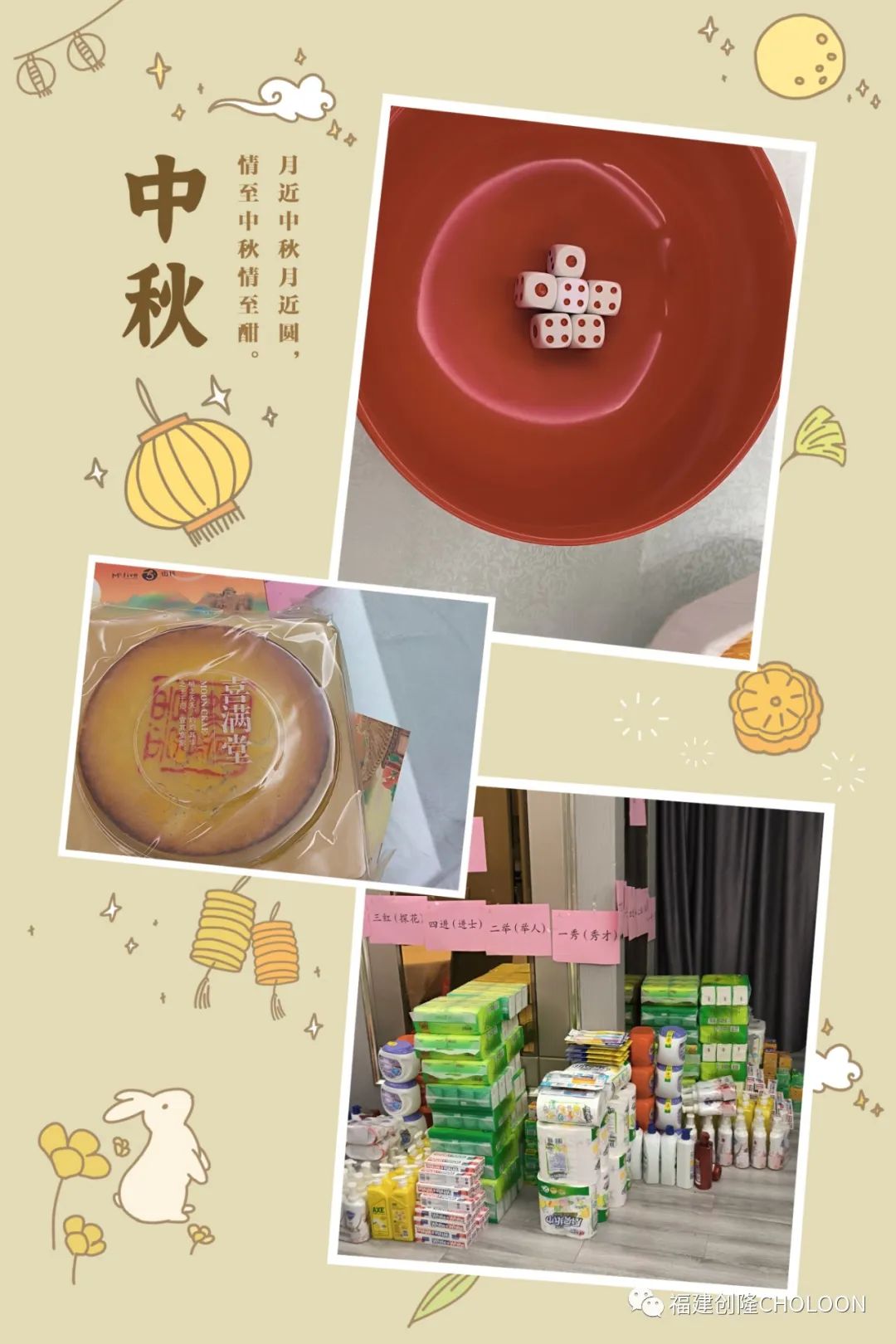 此值中秋佳節(jié)來臨之際,福建創(chuàng)隆于2023年9月27日晚舉辦2023年中秋節(jié)聚餐及博餅聯(lián)歡會,屆時邀請全體工作人員同聚一堂,共享團圓之夜,衷心的感謝各位員工辛勤付出,創(chuàng)隆的發(fā)展有您們的汗水、有大家的拼搏、有我們共同的奮斗。